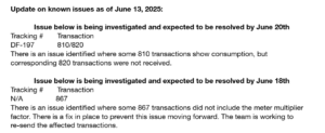 There is an issue identified where some 867 transactions did not include the meter multiplier factor. There is a fix in place to prevent this issue moving forward. The team is working to re-send the affected transactions.
