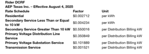 Notice Type: Tariff Notification – AEP Texas Inc. Distribution Cost Recovery Factor (DCRF) final rates effective August 4, 2025.